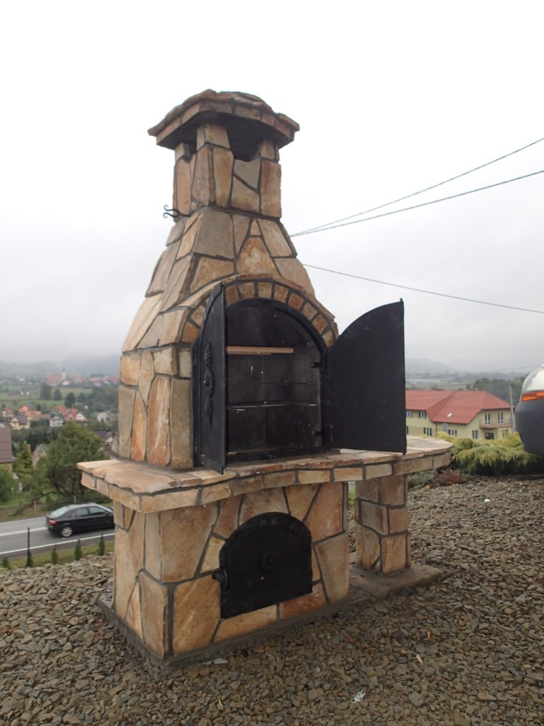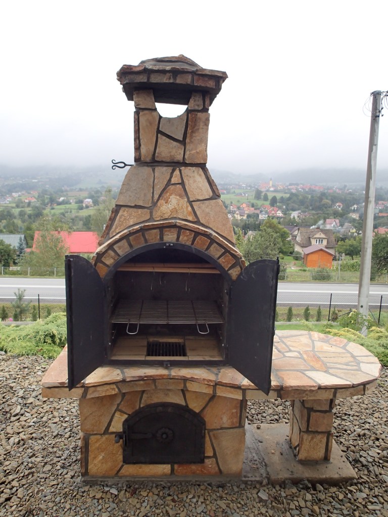 Alumine kütmiskolle on tehtud tellistest, suitsutuskamber/grill on tehtud šamotist. Kõik on kaetud kollase gneissiga.