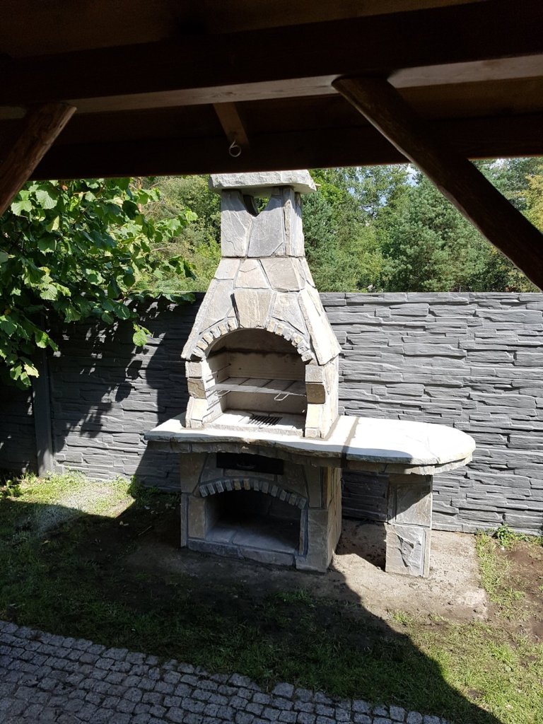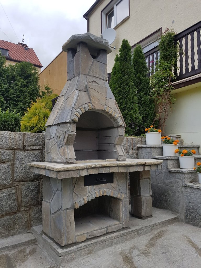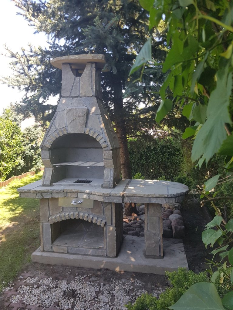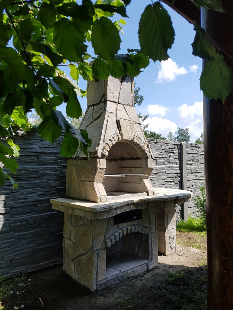 Kaetud vastupidava naturaalse kiviga ja sees on šamottplaadid, mis peavad vastu ka suuremale kuumusele.