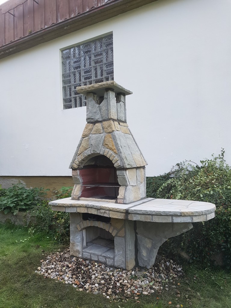 Kaetud vastupidava loodusliku kiviga ja sees on šamottplaadid, mis peavad vastu ka suuremale kuumusele.