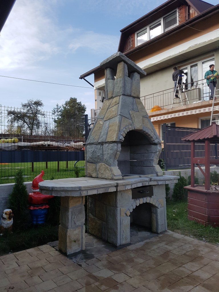 Kaetud vastupidava loodusliku kiviga ja sees on šamottplaadid, mis peavad vastu ka suuremale kuumusele.