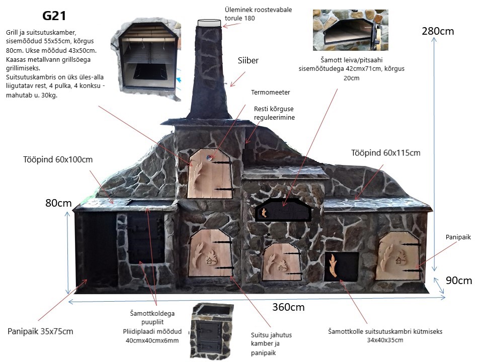 Väliköögi ahjukomplekti G21 kuulub suitsuahi, puupliit ja leiva/pitsaahi.