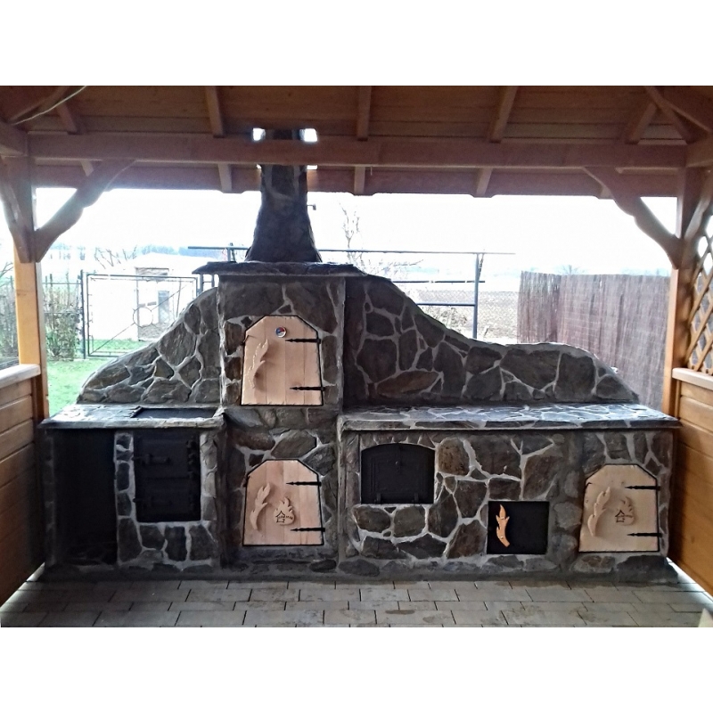 NB! Kõik väliköögi ahjukomplektid on standardina kaetud pruunikas-halli jõekiviga.