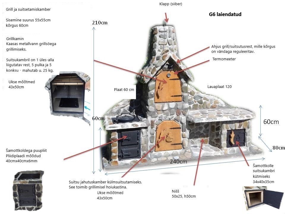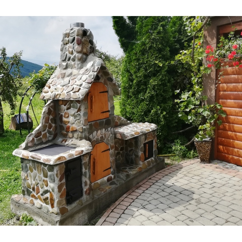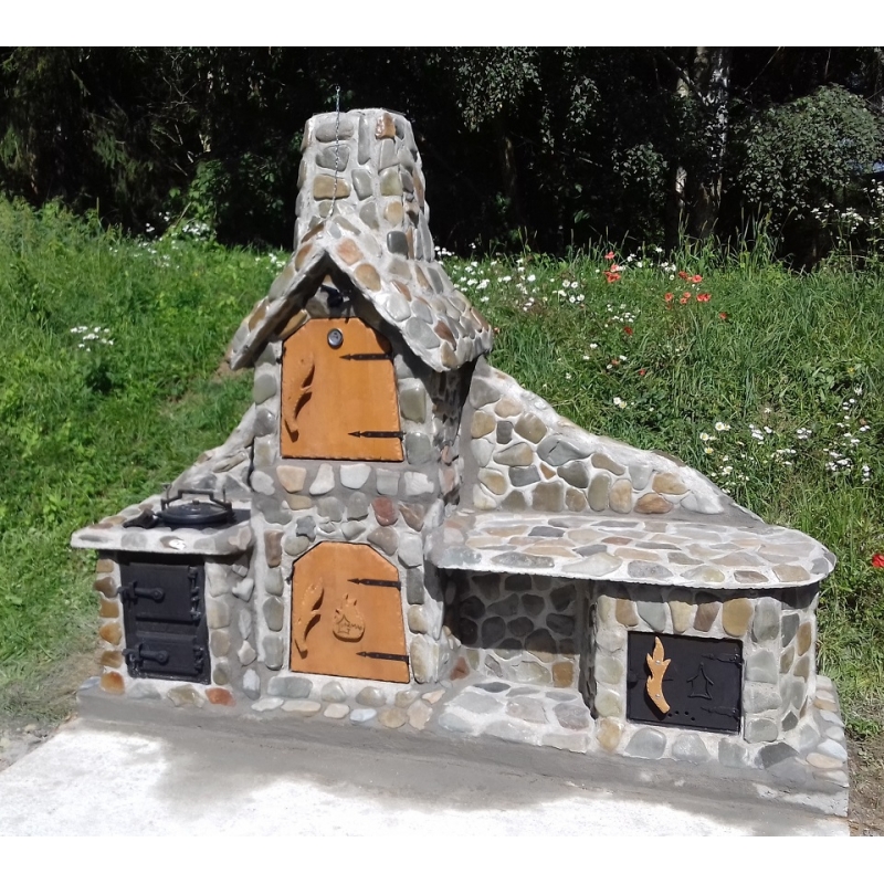 NB! Kõik väliköögi ahjukomplektid on standardina kaetud pruunikas-halli jõekiviga.